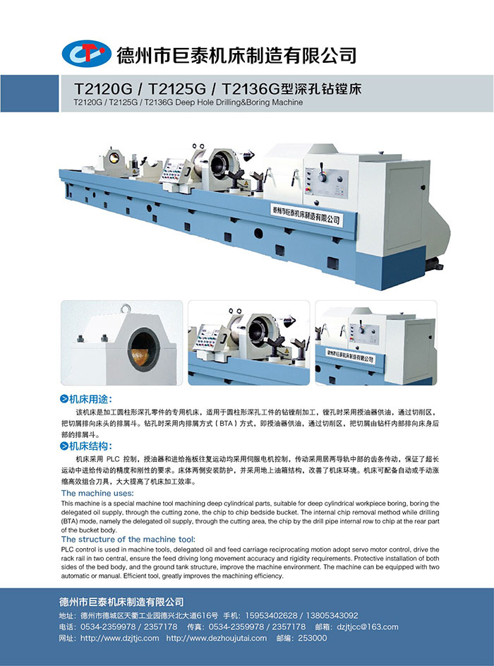 3) 根據(jù)用戶(hù)的需求,深孔鉆鏜床可帶鉆(鏜)桿箱,工件可低速旋轉(zhuǎn),刀具高速旋轉(zhuǎn),提高加工效率。